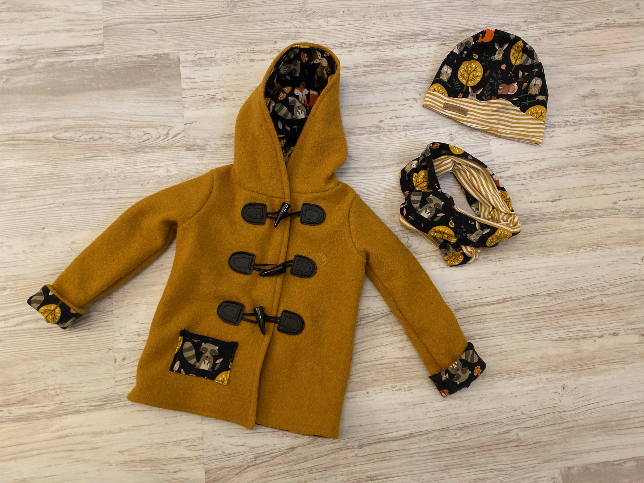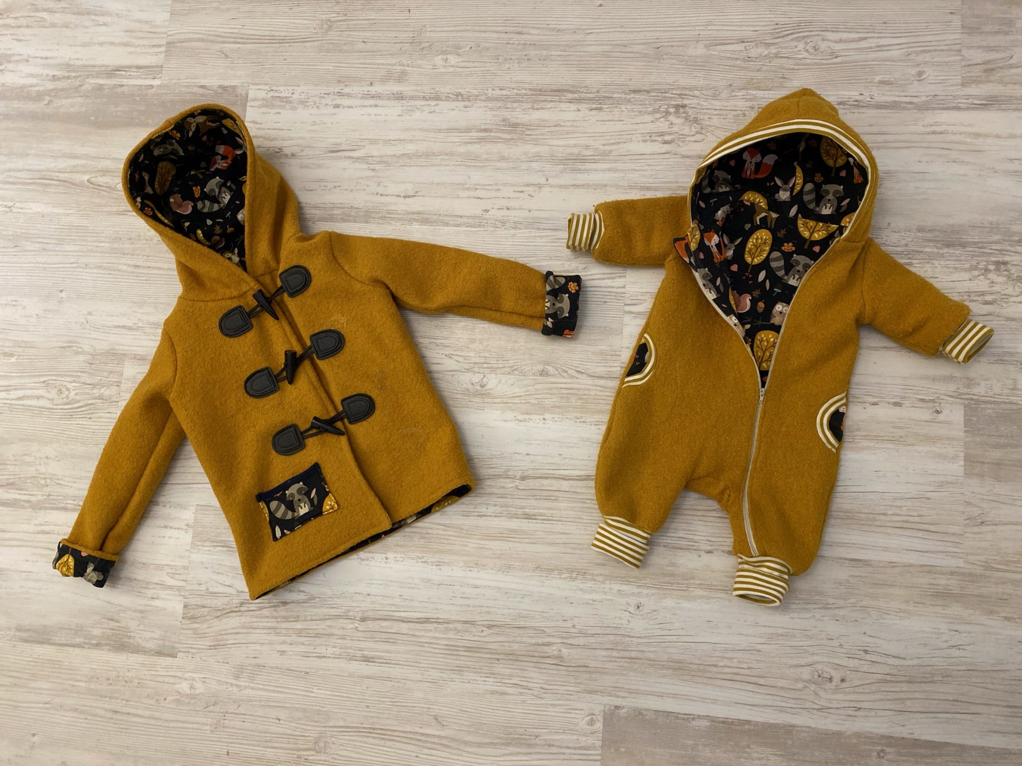 Aus Wollwalk lassen sich nicht nur hervorragende Anzüge sondern auch Jacken nähen. So können die großen Geschwister im Partnerlook mit den Kleinen die Welt erkunden.